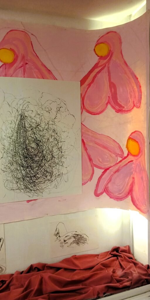 Pique examines female pleasure, secrecy, and agency using sex toys as mark-making tools. The work responds to a female sex toy stripped of a wellbeing award for being deemed “immoral” and “obscene,” highlighting a gendered double standard, as no male sex toy has faced the same award rejection. Informed by candid conversations and surveys with women aged 18–65, the work challenges cultural stigma surrounding female sexuality and wellbeing.