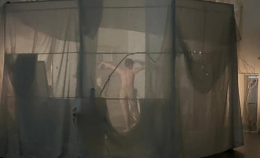 OutsideInDownSideUp is an installation shaped by inheritance and grief. After my father’s death, my family bequeathed me a mirror he used to look at his body altered by cancer. Not given by him, it felt less like a gift. This gesture unsettled me, prompting questions about why it was chosen. The installation questions how grief, objects, value, and emotional weight are assigned and carried.