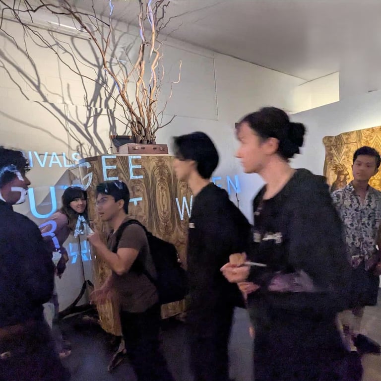 Peepholes create intimate, participatory experiences, inviting viewers to engage with migration and memory. Offering fragmented perspectives, they reflect the partial and shifting nature of home, identity, and belonging, together forming a layered, relational ecosystem.