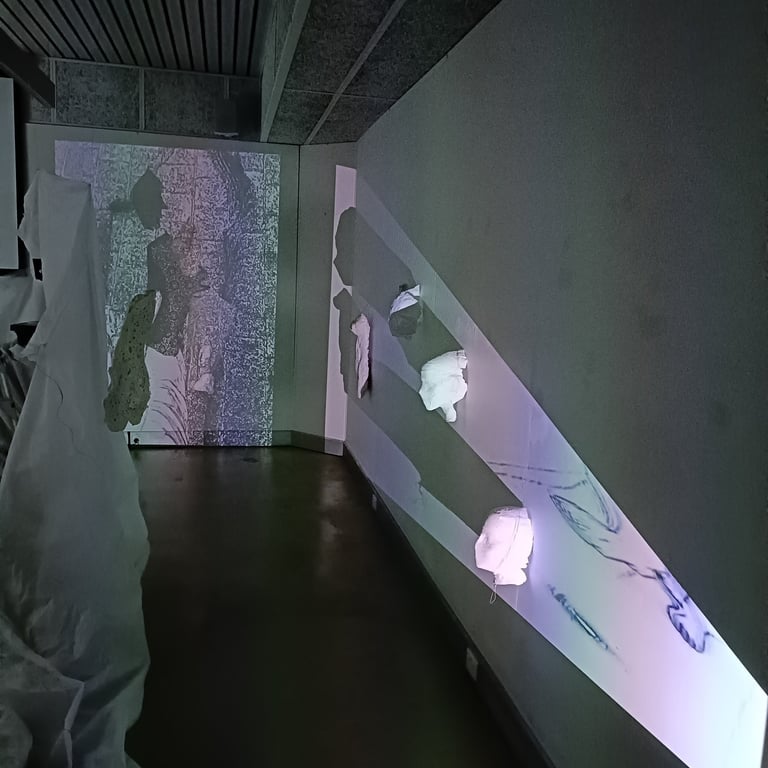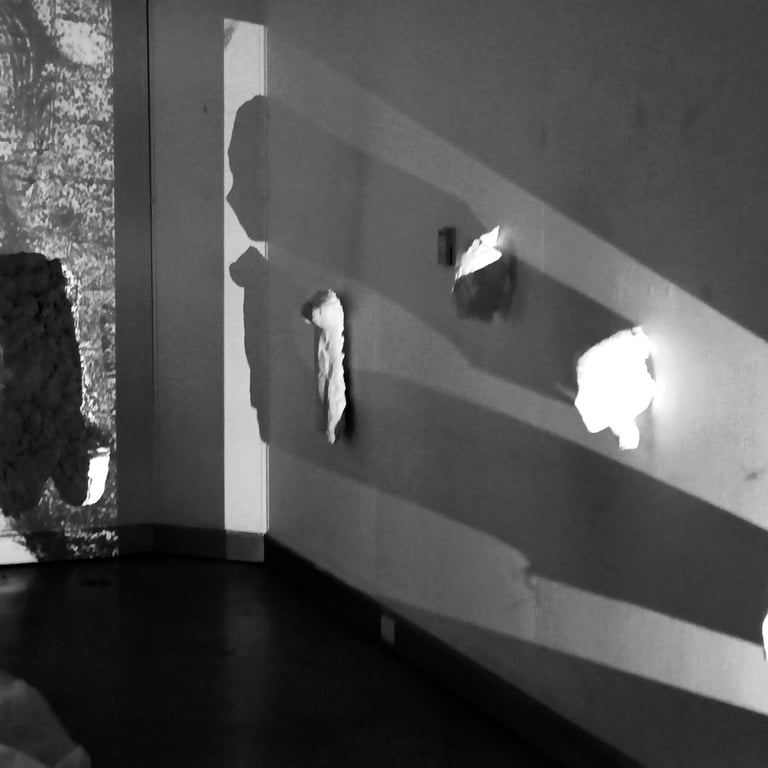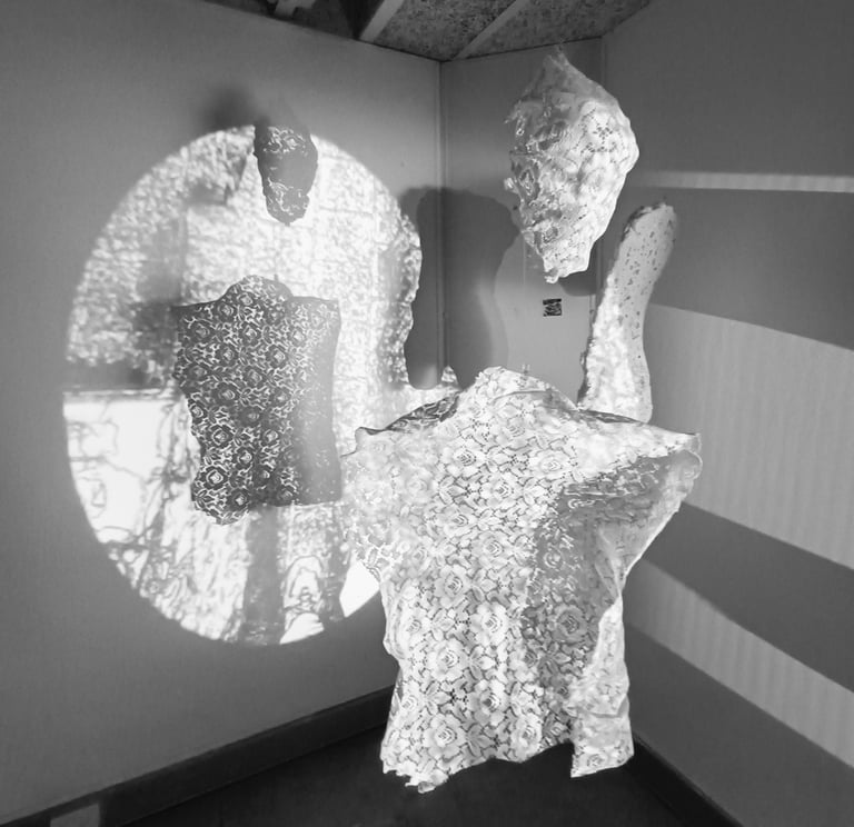 Veiled Presence uses fragile materials and moving light to explore the layered masks we wear and the tension between how we appear and who we are. The installation explores identity as relational and performative, what is authentic, what is assumed, and what emerges in the space between presence, perception, and unfolding, as participants’ shadows merge with the work.